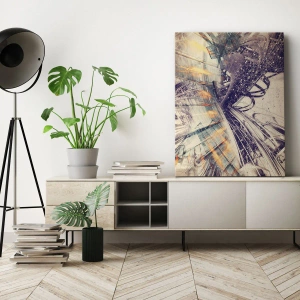 Obraz na płótnie - Dynamiczna abstrakcja w odcieniach beżu i fioletu - 160x50cm - W wielkim pędzie - Nowoczesna dekoracja ścienna do salonu i sypialni ARTTOR