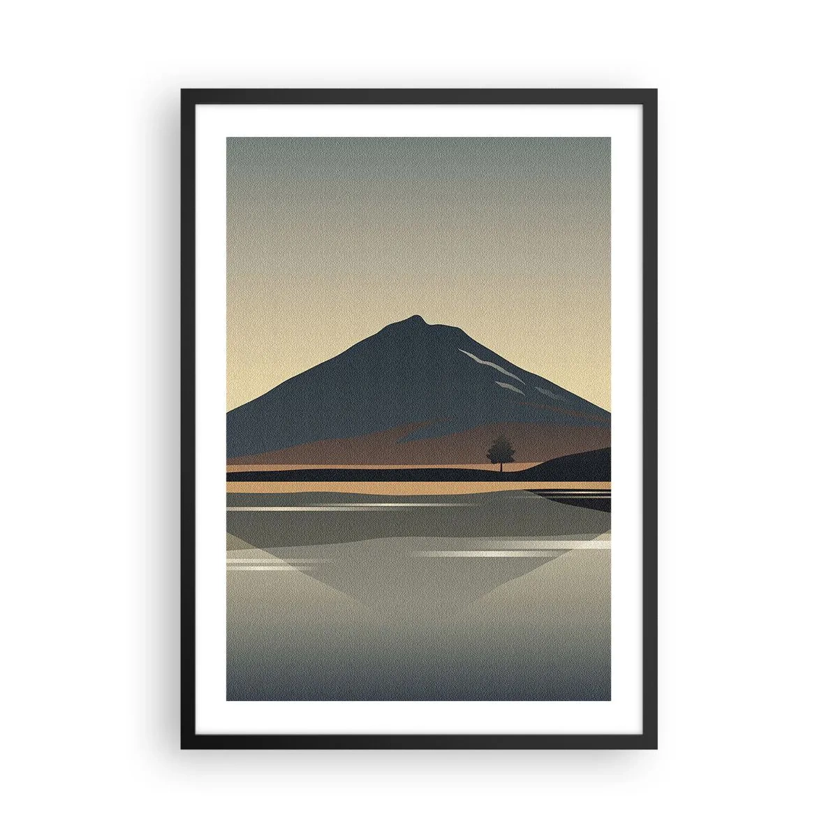 - Plakat przedstawia minimalistyczny krajobraz górski z odbiciem w spokojnym jeziorze. Subtelna kolorystyka i oszczędna forma nadają mu harmonijny, nowoczesny styl inspirowany japońską estetyką.