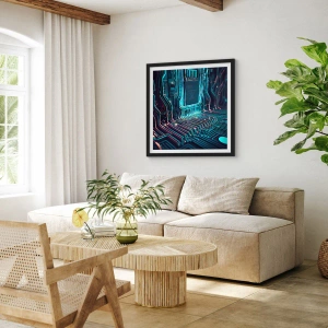 Plakat w czarnej ramie - Futurystyczna wizja układu scalonego - 50x70cm - Tak sobie myślę… - Nowoczesna dekoracja ścienna do salonu i sypialni ARTTOR
