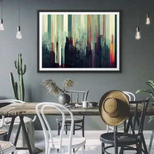 Struktura obrazu bazuje na geometrycznych podziałach, które nadają mu rytm i harmonię. Subtelne detale oraz mocne akcenty kolorystyczne sprawiają, że plakat doskonale odnajdzie się w przestrzeniach nowoczesnych, loftowych i minimalistycznych, nadając im nowoczesny, a jednocześnie elegancki wygląd.