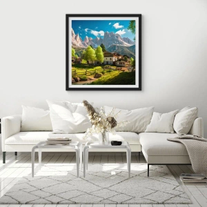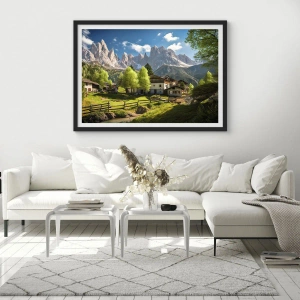 Plakat - Alpejska sielanka - Górska wioska u podnóża majestatycznych szczytów