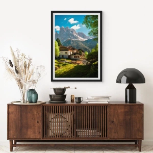 Plakat w czarnej ramie - Górska wioska u podnóża majestatycznych szczytów - 50x70cm - Alpejska sielanka - Nowoczesna dekoracja ścienna do salonu i sypialni ARTTOR