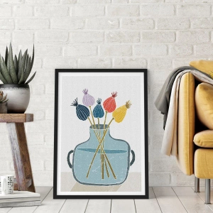 "Jak makiem zasiał" to wyjątkowy plakat przedstawiający subtelną i minimalistyczną kompozycję suszonych makówek umieszczonych w przezroczystym, szklanym wazonie. Ilustracja zachwyca delikatnością oraz pastelową, stonowaną kolorystyką, która podkreśla naturalne piękno roślin. Prosta forma i subtelna paleta barw doskonale wpisują się w nowoczesne i skandynawskie trendy aranżacyjne.