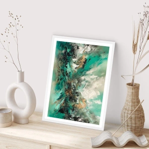 Plakat w białej ramie - Szmaragdowo-czarna kipiel - 100x70 cm