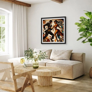 Plakat w czarnej ramie - Dynamiczna para tańcząca w abstrakcyjnej formie - 100x70cm - Taniec pasji i namiętności - Nowoczesna dekoracja ścienna do salonu i sypialni ARTTOR