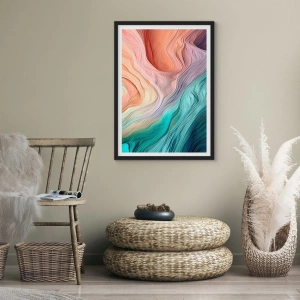 Plakat w czarnej ramie - Tęczowa fala - 40x40 cm