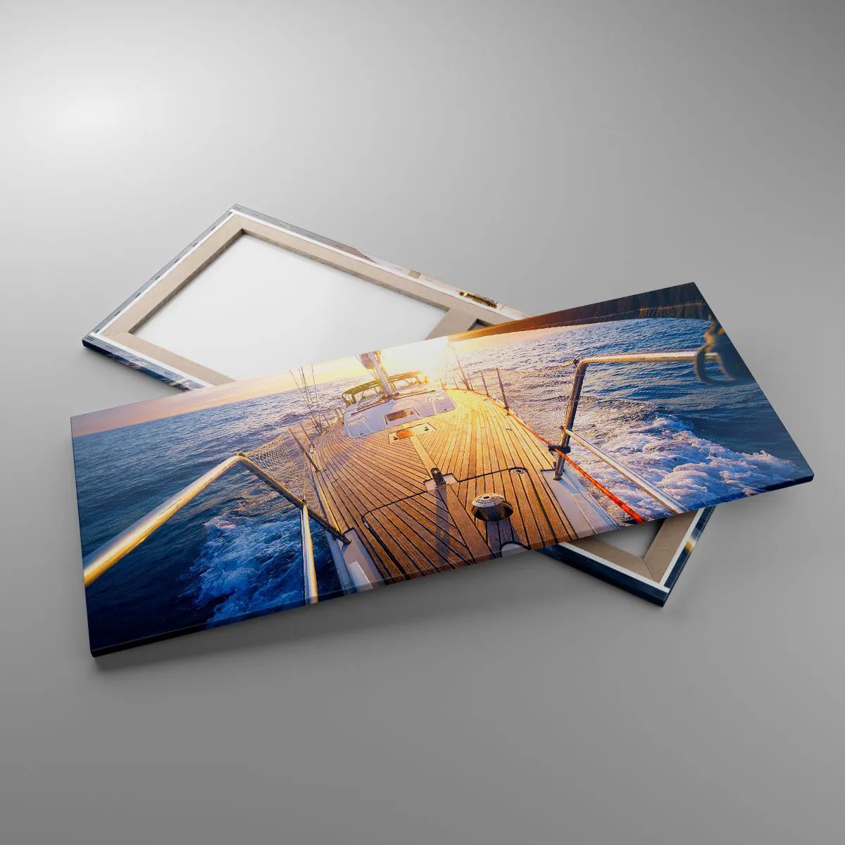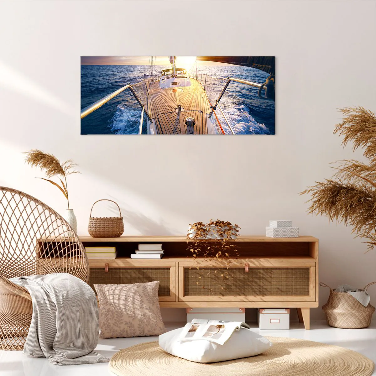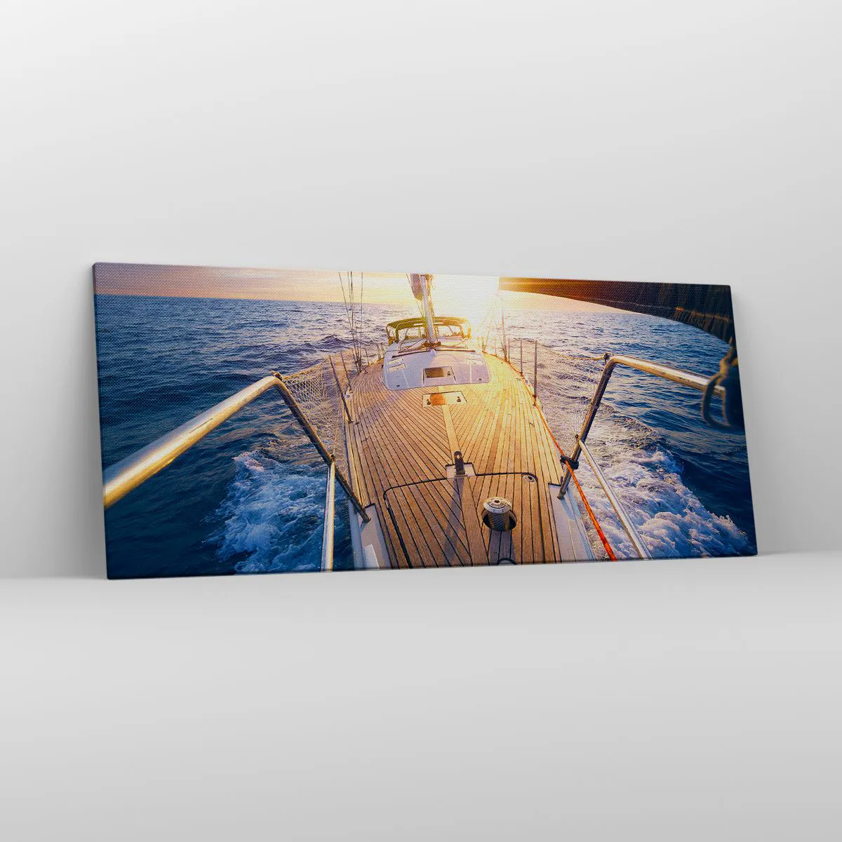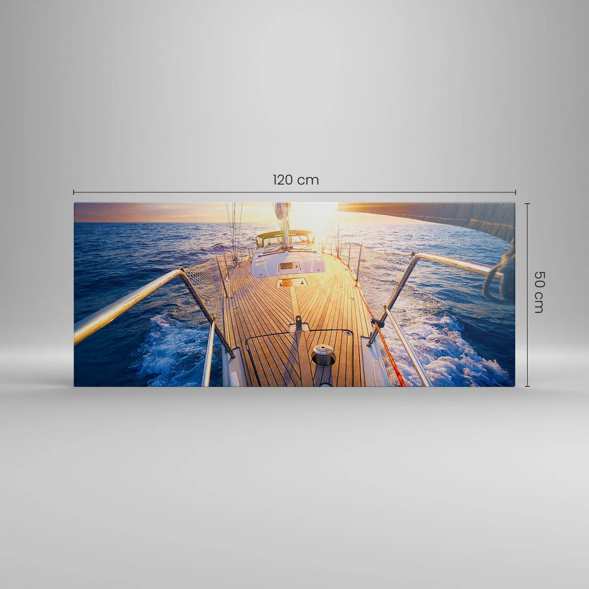 Obraz na płótnie - Jacht na morzu podczas zachodu słońca - 120x50cm - Biegnąca po falach - Nowoczesna dekoracja ścienna do salonu i sypialni ARTTOR