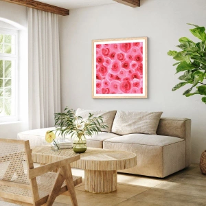 Plakat w ramie jasny dąb - Róże na dole i na górze - 40x40 cm