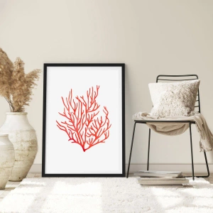 Plakat - Koralowy filigran - Czerwony koral na białym tle w minimalistycznym stylu