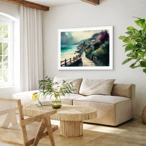 Plakat w białej ramie - Śródziemnomorskie miasteczko - 40x50 cm
