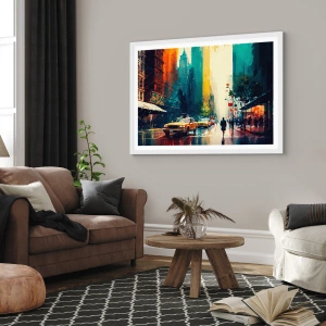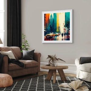 Plakat w białej ramie - Nowy Jork – tu nawet deszcz jest kolorowy - 40x40 cm