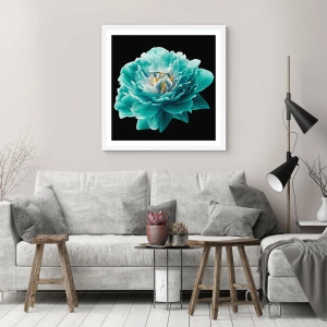 Plakat w białej ramie - Płatki błękitne i złote - 50x70 cm