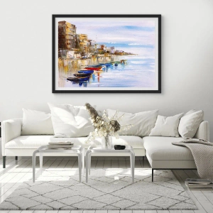 Plakat w czarnej ramie - Wielobarwna miejska przystań - 50x50 cm