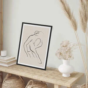 Plakat w czarnej ramie - Minimalistyczna sylwetka w czerni na jasnym tle - 70x50cm - Szkic intymny - Nowoczesna dekoracja ścienna do salonu i sypialni ARTTOR
