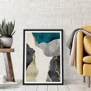 Plakat w czarnej ramie - Mozaikowa kompozycja z nitką złota - 50x50 cm