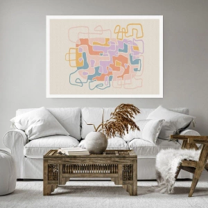 Plakat - Kolorowa abstrakcja z nieregularnymi liniami na jasnym tle - 50x70cm - Labirynt – radosna przygoda - Nowoczesna dekoracja ścienna do salonu, kuchni i sypialni ARTTOR