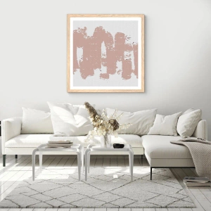 Plakat w ramie jasny dąb - Abstrakcja w łagodnym różu - 60x60 cm