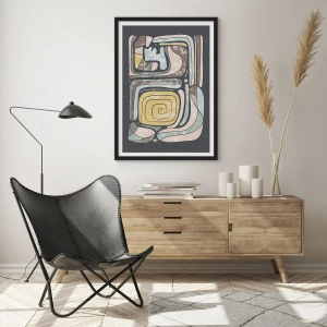 Plakat w czarnej ramie - Abstrakcja w duchu prekolumbijskim - 70x100 cm