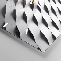 Zegar szklany posiada mechanizm gwarantujący płynące - swobodne przemieszczanie się wskazówek bez emitowania dźwięku. Funkcjonalność ta daje odczucie komfortu i swobody