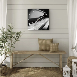 Zegar ścienny - Czarno-biała klawiatura fortepianu - 30x30cm - Harmonia kształtów i barw - Nowoczesna dekoracja ścienna do salonu, kuchni i sypialni ARTTOR