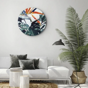 Zegar ścienny - Kwiat strelicji w otoczeniu liści w jasnym świetle - 30x30cm - Ptakokrzak - Nowoczesna dekoracja ścienna do salonu i sypialni ARTTOR