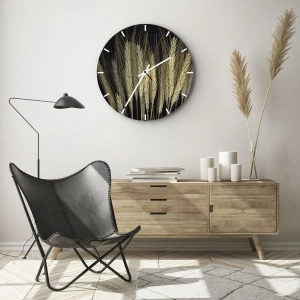 Zegar ścienny - Kłosy pszenicy na czarnym tle w rustykalnym stylu - 30x30cm - Rustykalna magia - Nowoczesna dekoracja ścienna do salonu i sypialni ARTTOR