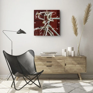 Zegar ścienny Stworzony do zwycięstw - Zbliżenie retro roweru na tle czerwonej deski