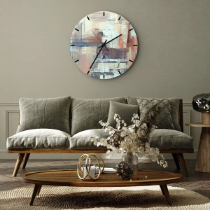 - Zegar ścienny z abstrakcyjną kompozycją grubo kładzionych pociągnięć pędzla w pastelowych i kontrastowych barwach. Artystyczna forma dodaje wnętrzom charakteru i głębi wizualnej.
