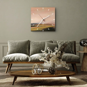 Zegar ścienny - Krajobraz w różowych i złotych odcieniach - 30x30cm - W różowej tonacji - Nowoczesna dekoracja ścienna do salonu i sypialni ARTTOR