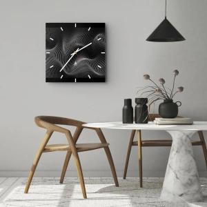Zegar ścienny - Hipnotyzujące białe linie na czarnym tle tworzące optyczną falę - 30x30cm - Taniec światła w przestrzeni - Nowoczesna dekoracja ścienna do salonu, kuchni i sypialni ARTTOR