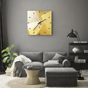 Zegar ścienny - Geometryczne formy w złotych i jasnych odcieniach - 30x30cm - Pogoda geometrii - Nowoczesna dekoracja ścienna do salonu i sypialni ARTTOR