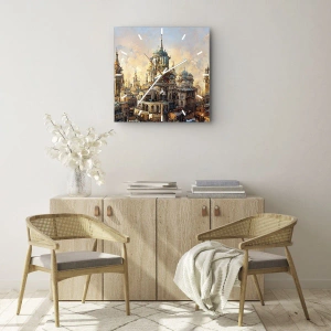 Zegar ścienny - Architektoniczne wieże w promieniach zachodzącego słońca - 30x30cm - Miasto miast - Nowoczesna dekoracja ścienna do salonu i sypialni ARTTOR