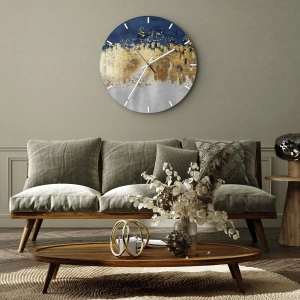Zegar ścienny - Abstrakcyjna kompozycja w odcieniach złota i granatu - 30x30cm - Nowoczesna kompozycja z błyskiem - Nowoczesna dekoracja ścienna do salonu i sypialni ARTTOR