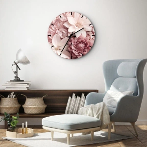 Zegar ścienny - W różowych płatkach - 40x40 cm