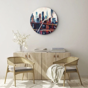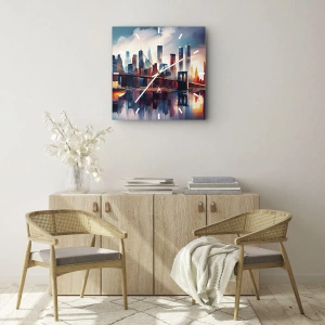 Zegar ścienny - Panorama Nowego Jorku z mostem i odbiciem w wodzie - 30x30cm - Zjawiskowy Nowy Jork - Nowoczesna dekoracja ścienna do salonu i sypialni ARTTOR