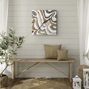 Zegar ścienny - Meandry barw ziemi - Meandrujące pasy w barwach ziemi na białym tle