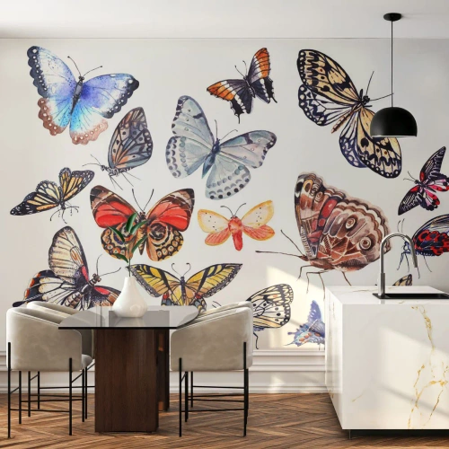 Fototapeta Samoprzylepna Deluxe Sticker - Koronkowy, barwny rój - Dla Dzieci, Kolorowe Motyle, Grafika - 250x175 cm