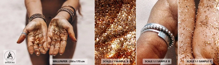 Fototapeta Próbka Standard Eco - Dar dla ciebie - Kobiece Dłonie, Boho, Złoto - 100x30 cm