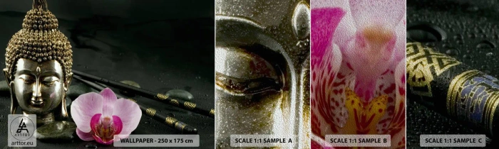 Fototapeta Próbka Premium Sand - Harmonia mądrości i piękna - Budda, Religia, Wiara - 100x30 cm