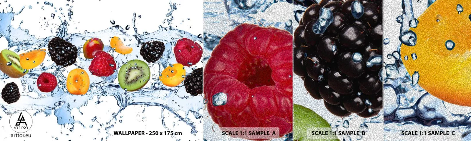 Fototapeta Próbka Premium Sand - Baw się z nami - Owoce, Abstrakcja, 3D - 100x30 cm