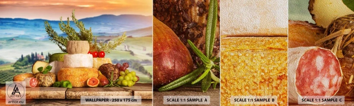 Fototapeta Próbka Premium Sand - Włoska radość życia - Toskania, Krajobraz, Pyszne Sery - 100x30 cm