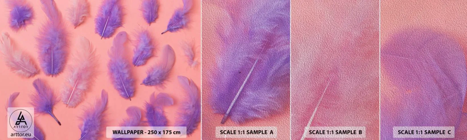 Fototapeta Próbka Premium Sand - Liliowy ptak pragnienia - Ptasie Pióro, Inspiracja, Grafika - 100x30 cm