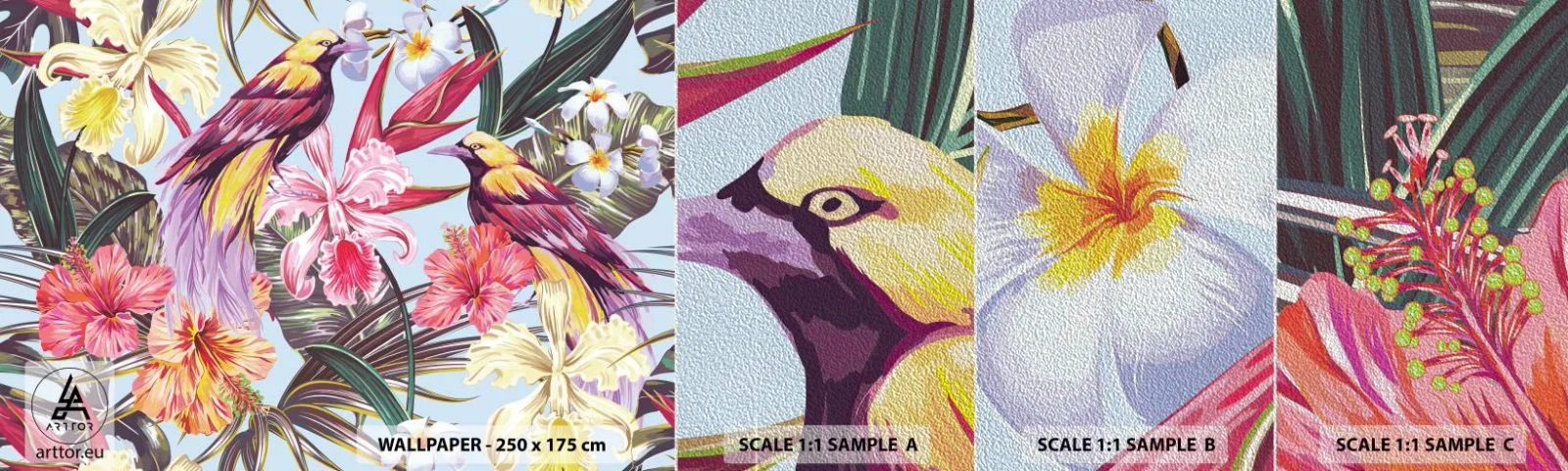 Nowoczesna technologia druku wraz z unikatową strukturą fototapety nadają jej naturalnie nasyconej kolorystyki.