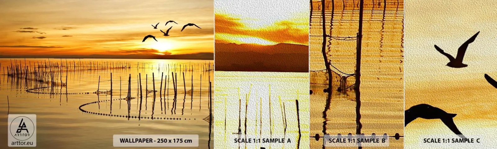 Fototapeta Próbka Premium Sand - Na łowisku - Krajobraz, Jezioro, Sieć Rybacka - 100x30 cm