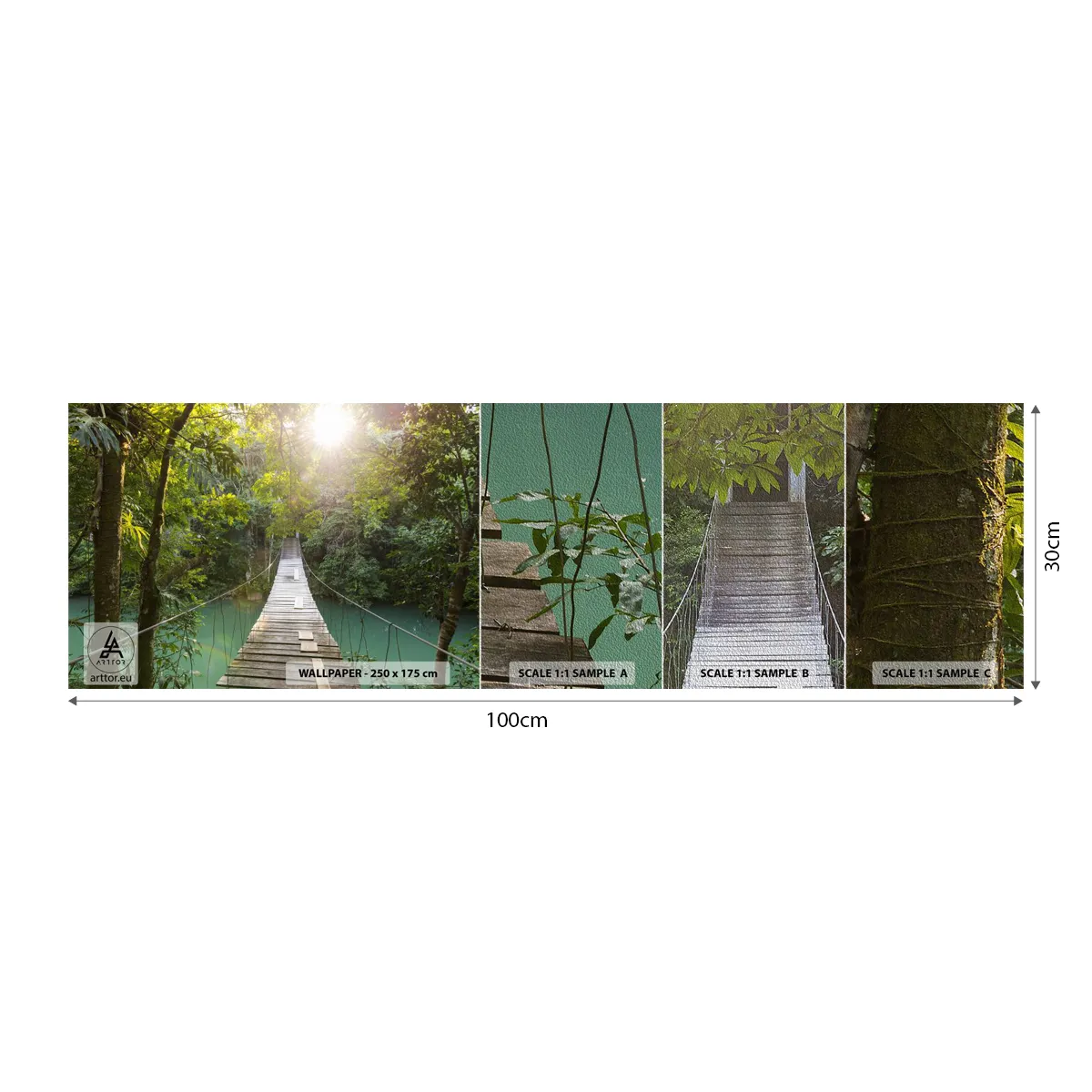 Fototapeta Próbka Premium Sand - Nad lazurową wodą do lazurowego lasu - Krajobraz , Dżungla, Drewniany Most - 100x30 cm