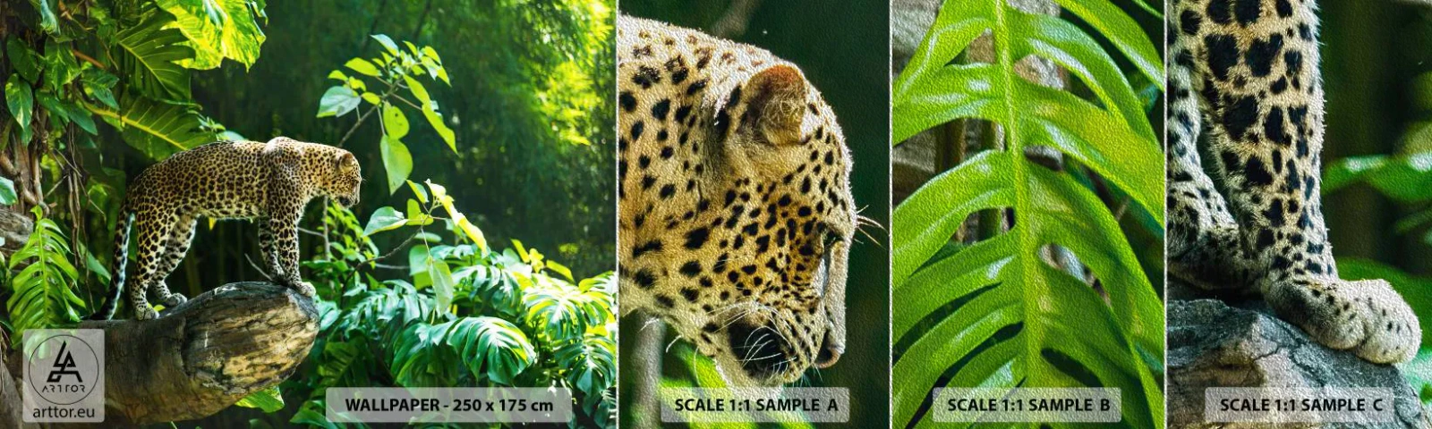 Fototapeta Próbka Premium Sand - Na łowy? - Dżungla, Lampart, Tropiki - 100x30 cm