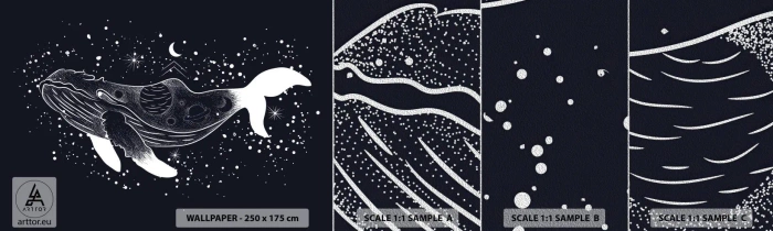 Fototapeta Próbka Premium Sand - W oceanie wszechświata - Abstrakcja, Wieloryb, Czarno-Biały - 100x30 cm