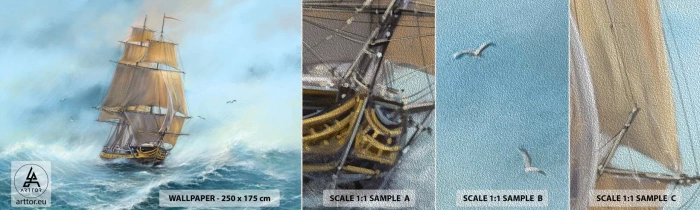 Fototapeta Próbka Premium Sand - Mknący po falach - Morze, Statek, Marynistyczny - 100x30 cm