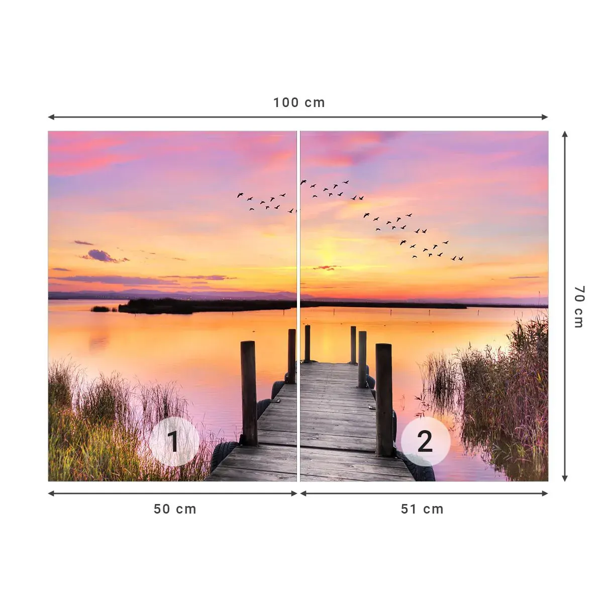 Fototapeta Samoprzylepna Deluxe Sticker - Fiołkowy cichy świt - Krajobraz, Jezioro, Natura - 100x70 cm