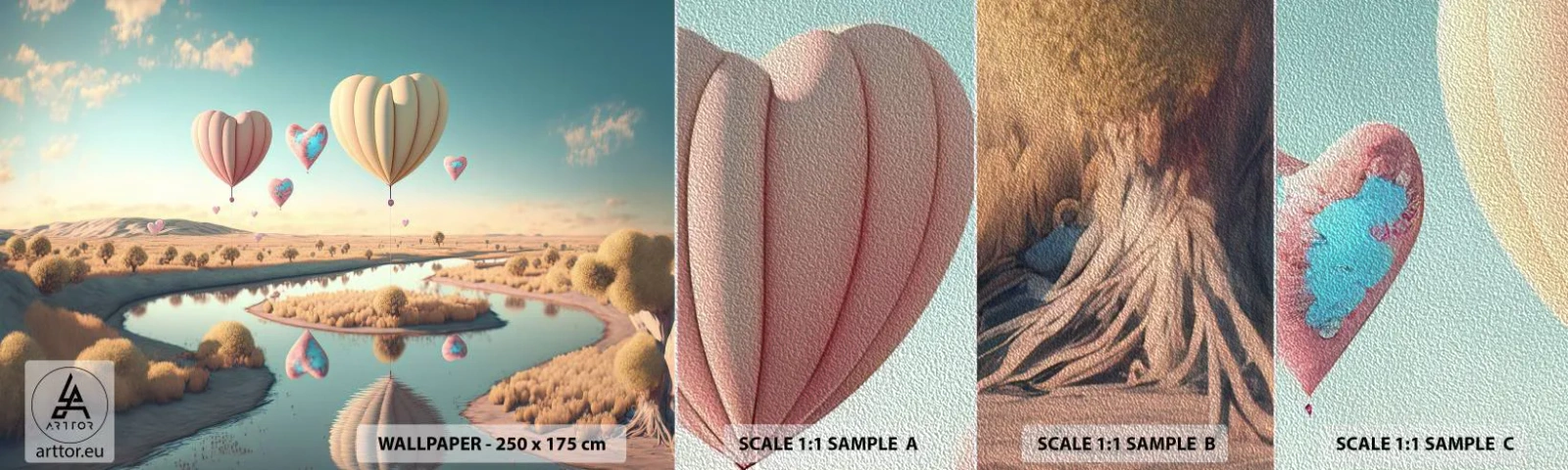 Fototapeta Próbka Premium Sand - Miłość pozwala wznieść się - Balony, Pastelowe, Cukierkowe - 100x30 cm